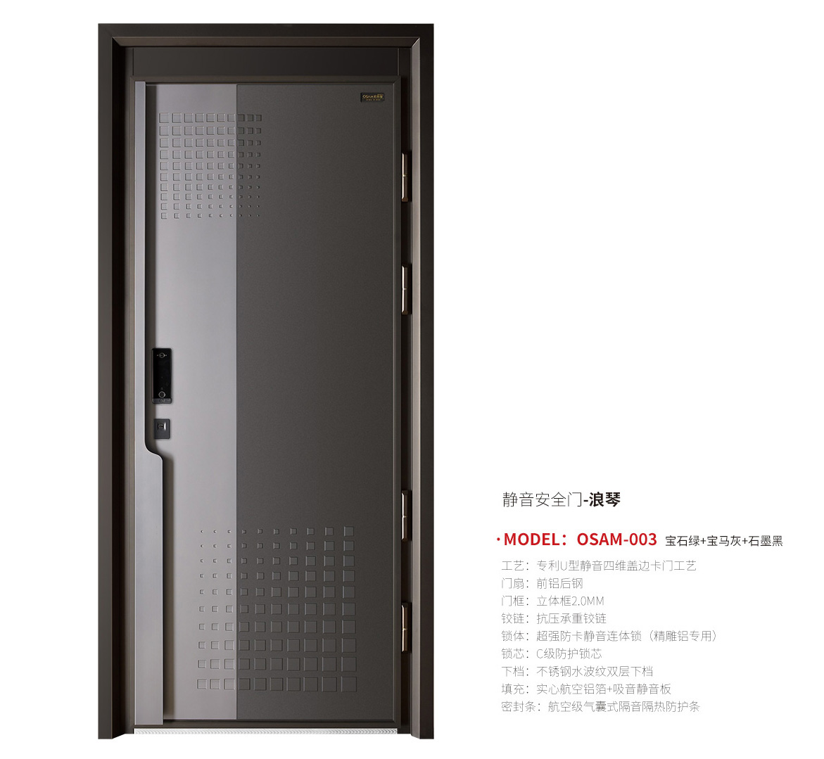 引領(lǐng)技術(shù)-歐奢曼全新打造靜音和安全雙系統(tǒng)安全門(mén),為居者打造全新的生活方式。